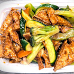 Tender chicken tossed in a bold, spicy Szechuan-style sauce.